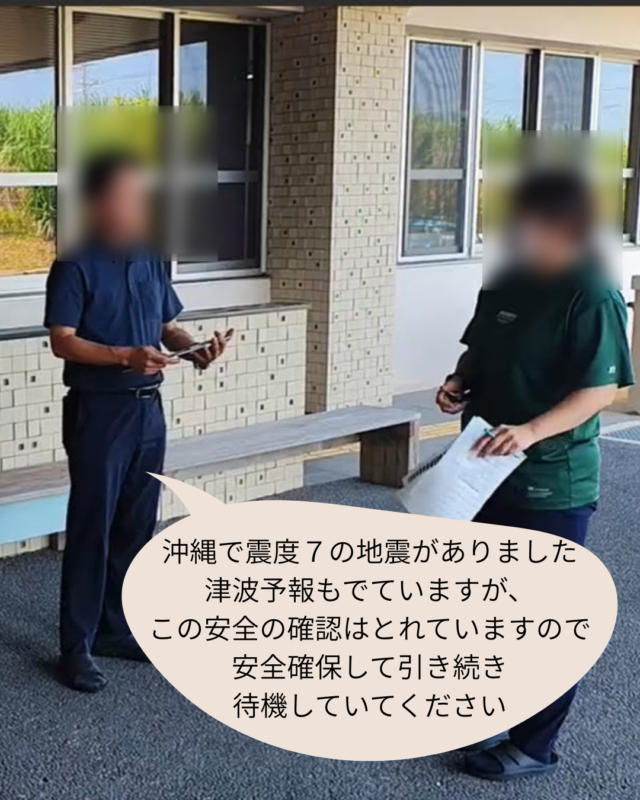 八重瀬町の障がい者支援施設で、沖縄県広域の地震・津波災害を想定した避難訓練、避難誘導訓練を実施いたしました。